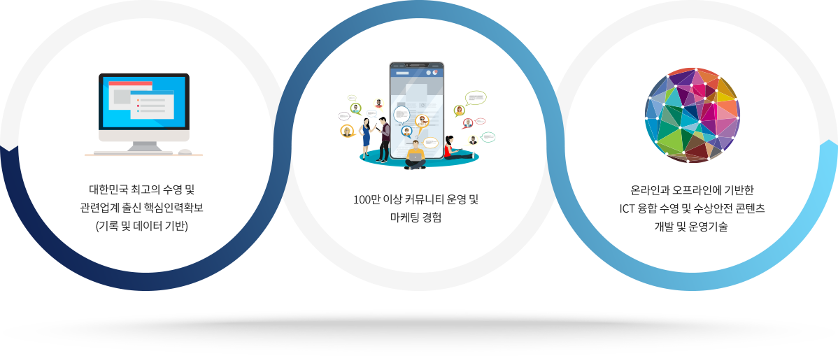 (사)한국수상안전진흥협회는 대한민국 최고의 수상안전 전문 사단법인으로 자리매김 할 수 있도록 수영 및 관련 업계 출신 최고의 인적구성과 맞춤형 ICT 통합플랫폼 기술을 구비하였습니다.